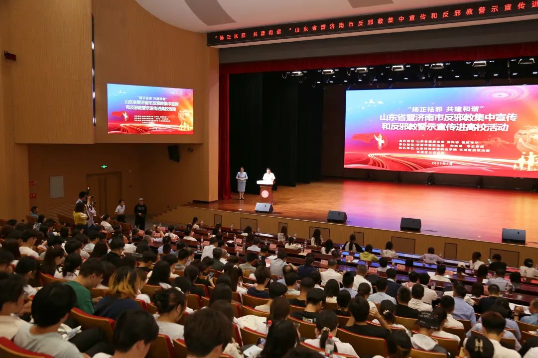 启动仪式前,济南市组织力量在校园内设置宣传摊位、摆放展板、悬挂标语条幅、利用专业宣传车开展了集中宣传,与会干警向学生现场宣讲反邪教知识并发放宣传资料和宣传用品。仪式结束后,济南市公安局反邪教支队负责人进行了反邪教知识专题讲座。省、市有关部门处室负责同志,长清区委区政府以及大学城12所高校分管意识形态工作的负责人、保卫部门负责人和学生代表共400余人参加活动。